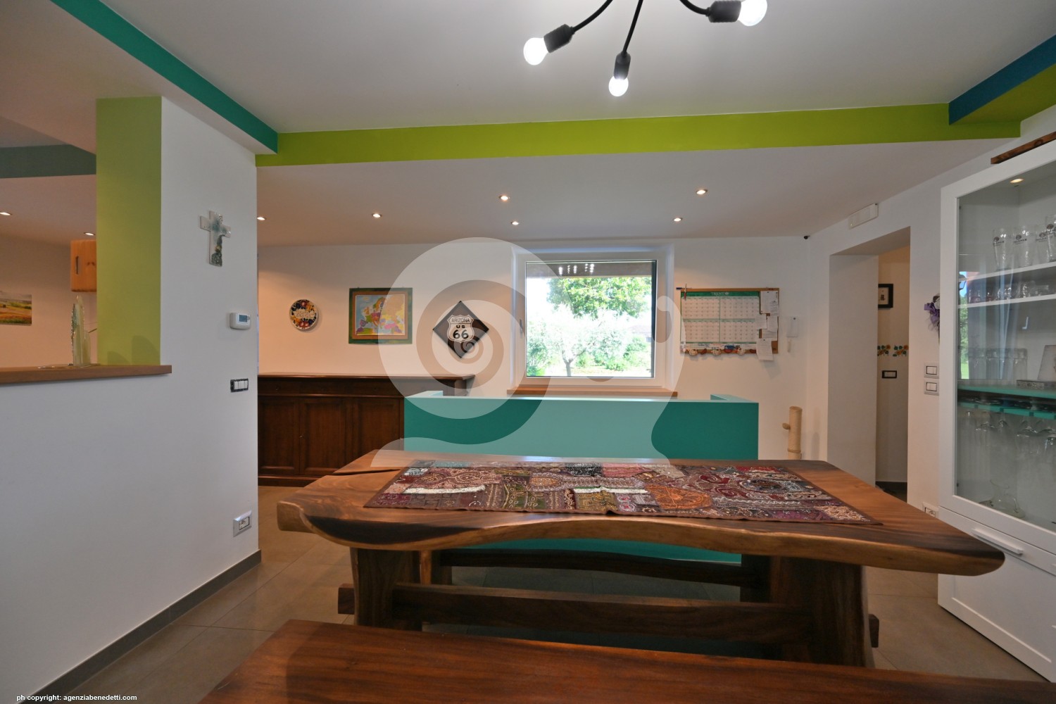 Entriamo in una casa che cattura il sole e riflette un vivere sereno e informale, i colori vivaci e i toni di verde alle pareti richiamano il grande giardino, note di blu e di azzurro fanno pensare a strisce di cielo. Luminosa è la cucina, generosa e vivibile con un tavolo da pranzo etnico fatto a mano, soggiorno con caminetto, tv e divano "foffoso" per godersi i film, le camere si affacciano sul terrazzo tre belle matrimoniali, due bagni e un idromassaggio, cabina guardaroba e ripostiglio. Dispensa, bagno lavanderia e ripostiglio al piano terra eppoi cantina. Annessi alla casa una porzione di caseggiato ancora da personalizzare, c'è il garage, deposito, piccola officina e stanza hobby, autorimessa esterna e uno studio autonomo anche per svolgere un' attività da casa. Il giardino è una figata 2.680m² da godersi appieno abbracciato da mura in pietra, uno storico portale e cancelli in ferro battuto. Sedersi all'ombra del portico per regalarsi un pò di relax o giocare in giardino dev'essere davvero un bel passatempo e se hai dei desideri da esaudire... butta una monetina nel pozzo!